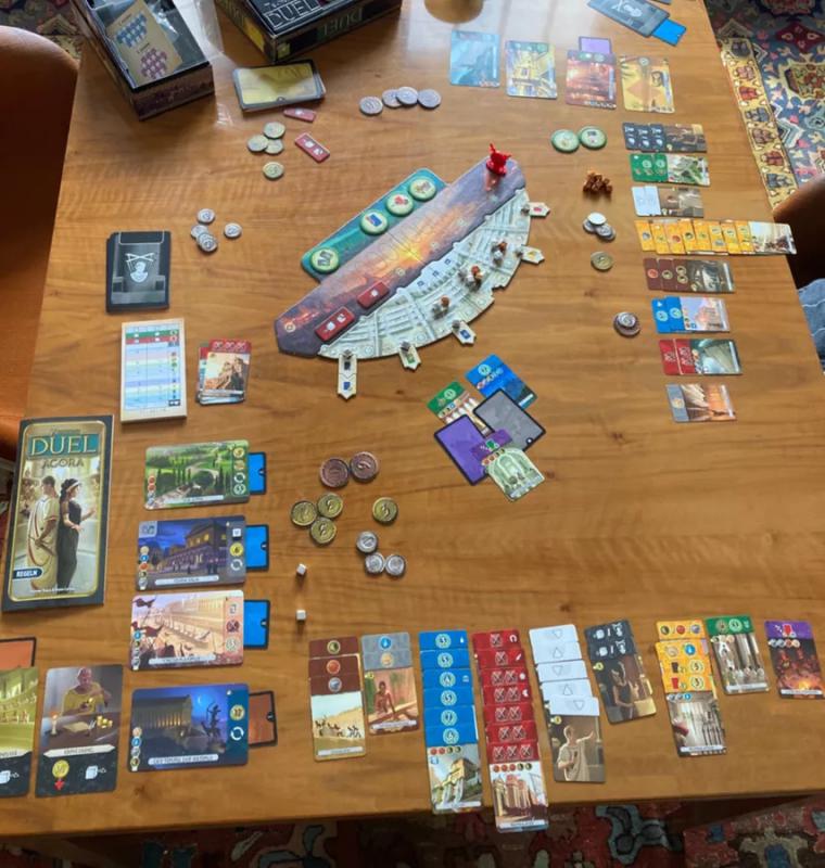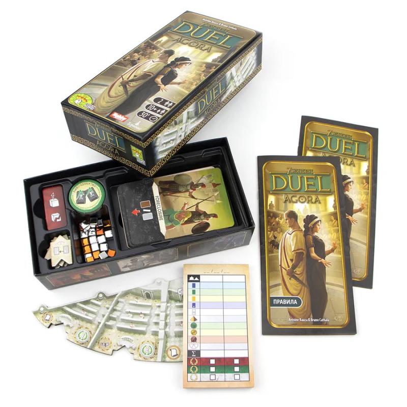 7 Wonders Duel: Agora features a new board called the Senate, comprising six separate chambers that provide players with benefits once they take possession of the area. Players can obtain a Senate chamber by taking senator cards. Should any player successfully take control of the majority of Senate chambers then they automatically win the game.
