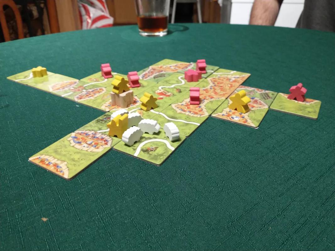 Shepherds are new pieces that can only be placed in fields. Each time a player expands the field occupied by his or her shepherd, that player has two options: 1. Draw a sheep token out of a bag, placing it near their shepherd; or 2. Trade in all their accumulated sheep for points. Each sheep token is worth 1-4 points, depending on the number of sheep depicted. However, hidden among the sheep tokens are two wolf tokens, and if a player draws one of these, all of their sheep are lost and placed back into the bag. This introduces a push-your-luck aspect to Carcassonne, as players can choose to either "cash-in" the sheep they have, or try to add more sheep and risk losing them all.