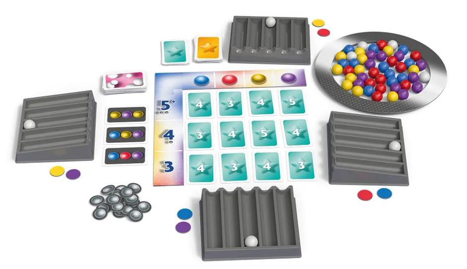 Make large groups, and you earn bonus markers that allow you to drop a marble of its matching color into your grid, giving you a better chance of scoring a large group.