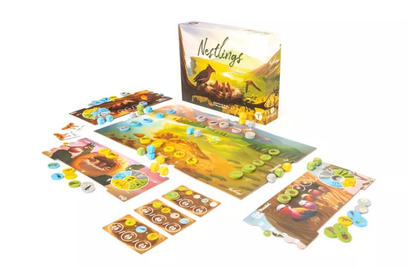 In Nestlings, players assume the role of birds competing to gain priority across four biomes: savannah, alpine, freshwater, and desert.