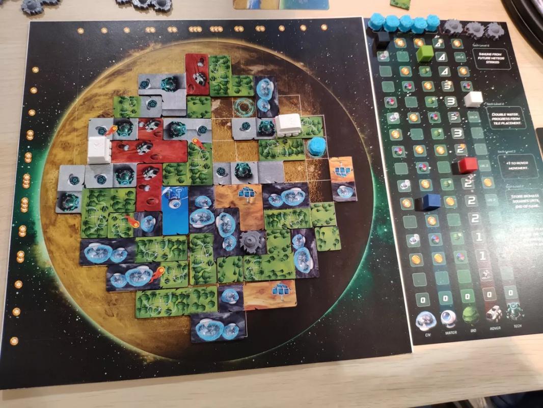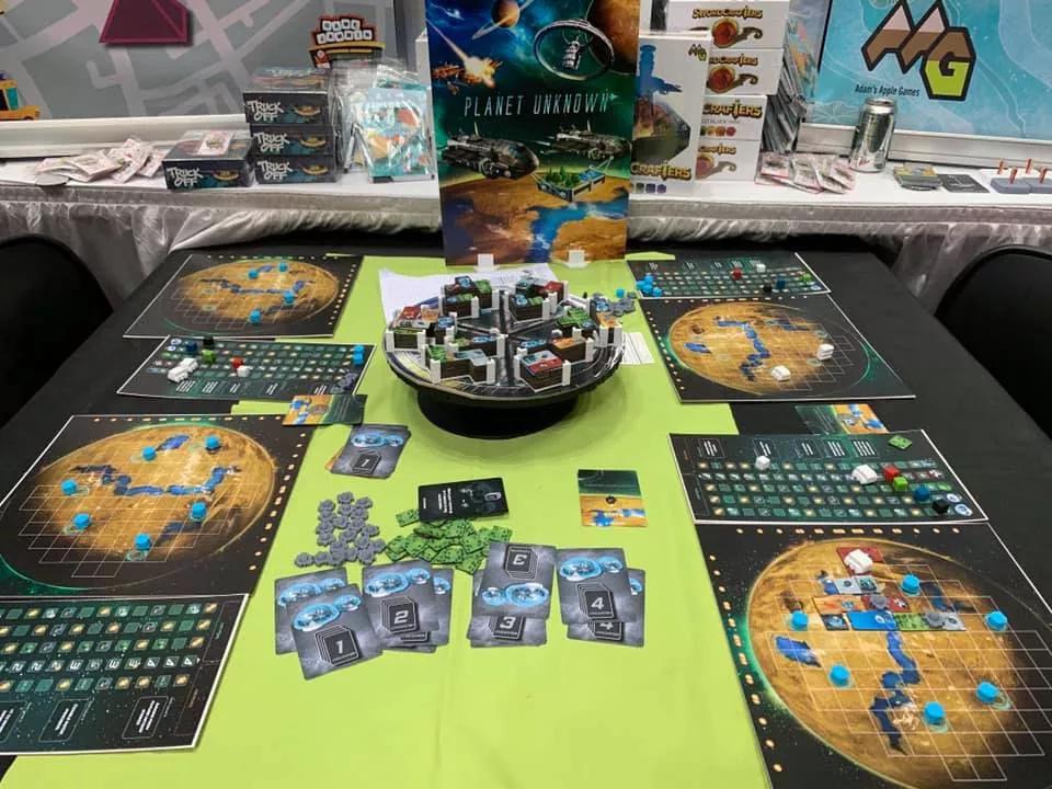 Planet Unknown innovates on the popular polyomino trend by allowing simultaneous, yet strategic turn-based play via the Lazy S.U.S.A.N. space station in the center of the table.