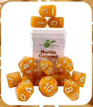 Large High-Visibility Polyhedral Dice: Marble Caramel Dice - Set of 15 w/ Arch'd4.