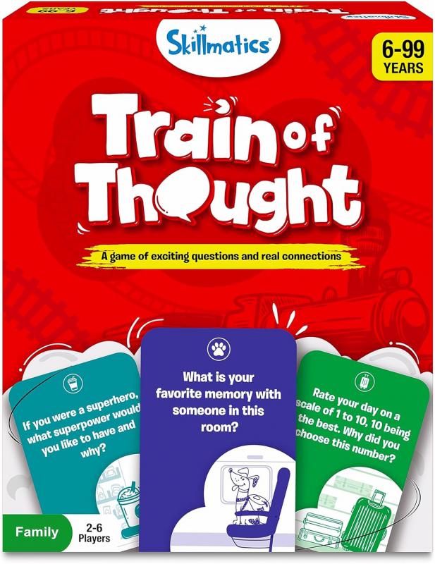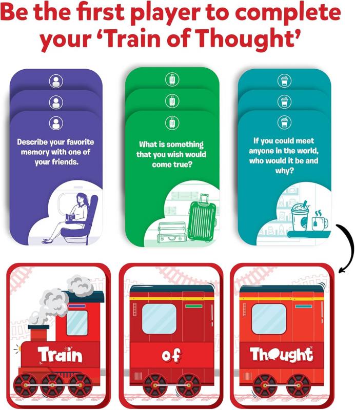 Make emotional connections as you ask and answer thoughtful questions and complete fun challenges with this easy-to-learn card game. If you could travel anywhere right now, where would you go? Who do you think knows you best? Learn more about the ones you love as you engage in fun and meaningful conversations! Be the first to complete your 'Train of Thought’ to win the game.