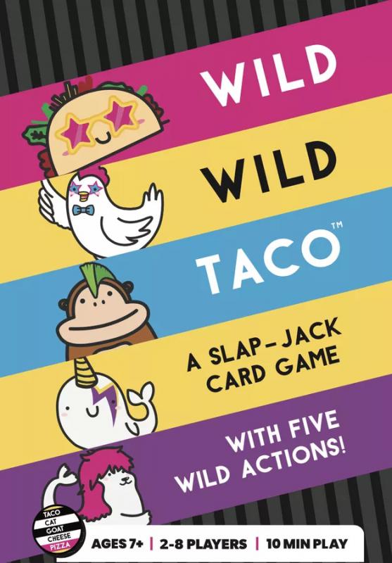 Wild Wild Taco has more of all the specials you love from Taco Cat Goat Cheese Pizza! Special action cards from the original game plus NEW characters are combined with ALL-NEW rules. In this game, the taco is wild while the specials are not...unless two are played in a row!