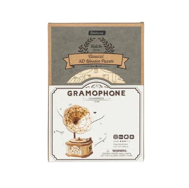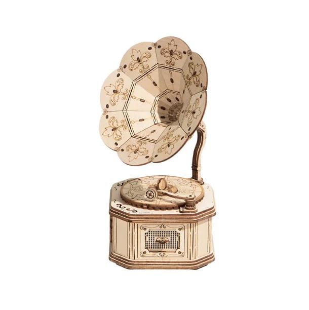 The Gramophone is a mini wooden puzzle that replicates the classic gramophone. It is well designed with the easy insertion and a delicate shape. It can be assembled quickly without using glue.