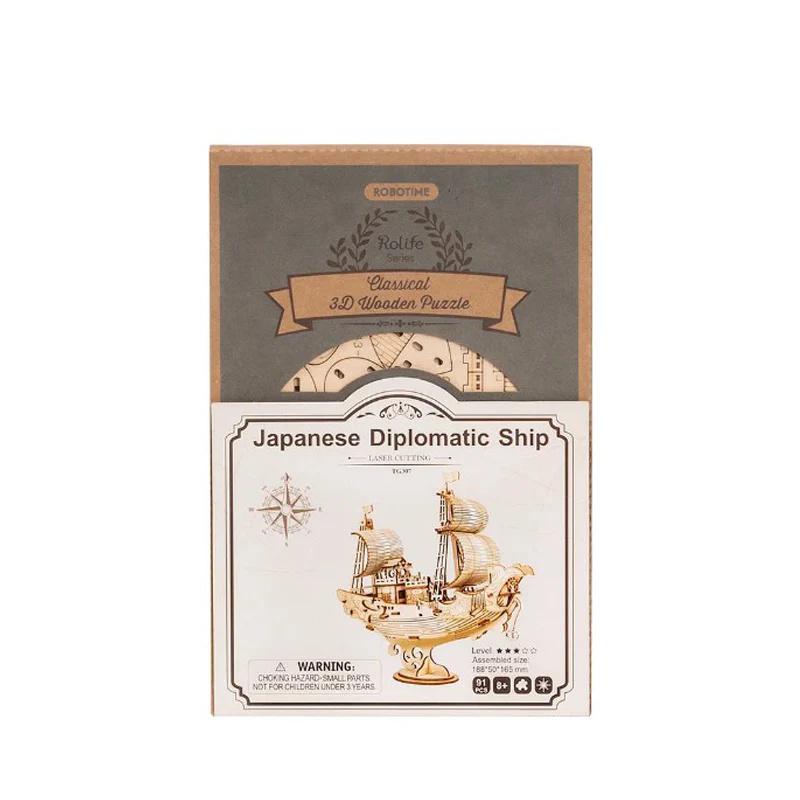 Conque big waves with the Japanese Diplomatic Ship model! Once assembled, the completed model showcases all the intricate details and features that an antique ship possessed. Whether displayed on a shelf or desk, this finished 3D wooden puzzle adds a touch of nautical charm to your surroundings.